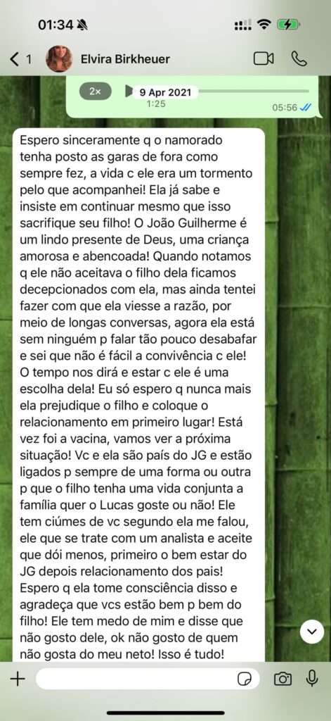 Em outro áudio, a avó, em um acesso de fúria descontrolada, despeja sobre o neto uma torrente de ofensas e preconceito: “Você é um neto de merda, criado por um pai viado, filho da puta”, ela grita. A agressão verbal, o ódio nu e cru, a homofobia usada como arma de desqualificação, expõem a profundidade do abismo que separa os dois lados da família. É um retrato sonoro do tipo de abuso psicológico a que João Guilherme era submetido, um abuso que deixa cicatrizes tão ou mais profundas que a violência física.