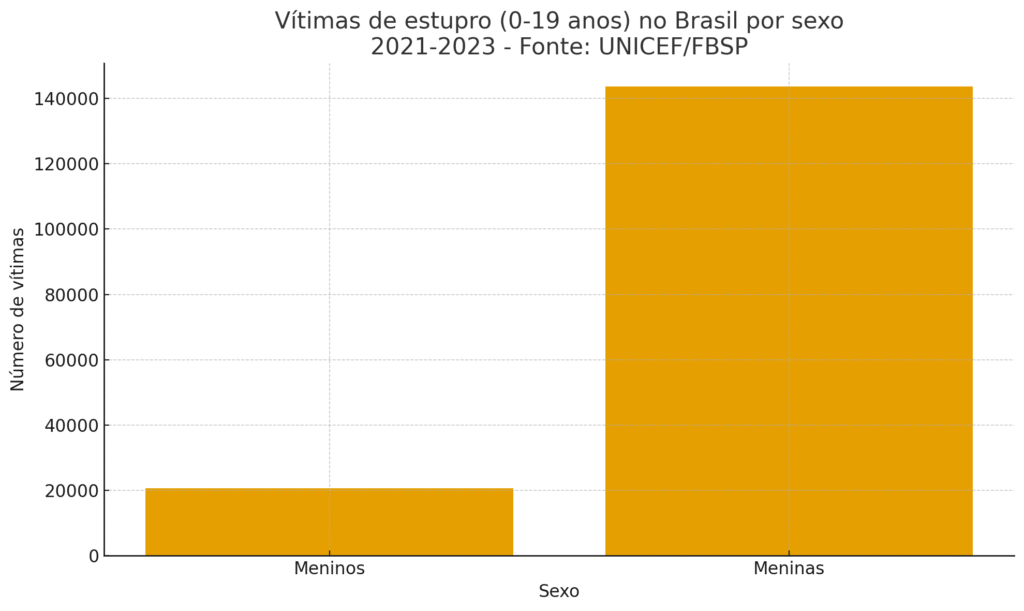 No gráfico que acompanha este texto, o contraste é visualmente evidente. De um lado, cerca de 20,5 mil meninos vítimas de estupro. Do outro, mais de 143 mil meninas, se somarmos o período 2021–2023. A diferença de volume é imensa, mas é justamente a menor barra do gráfico que deve chamar a atenção aqui: ela representa um grupo historicamente apagado do debate público, das políticas de prevenção e até das campanhas de conscientização.