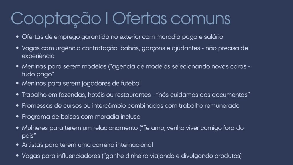 - Caminhos Protegidos: Combate direto ao tráfico de pessoas
