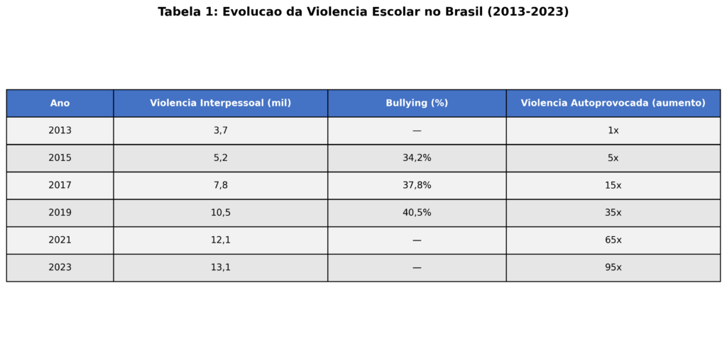 A compreensão das dinâmicas que afetam esses estudantes é fundamental para a construção de um sistema educacional verdadeiramente inclusivo e protetivo. Este artigo examina a situação da violência escolar no país, com um foco específico nas experiências de crianças e adolescentes que integram a neurodiversidade, analisando dados, contextos e as respostas institucionais a este fenômeno crescente.
